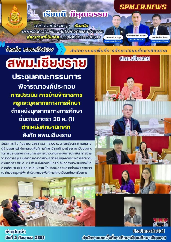 การประชุมคณะกรรมการพิจารณาองค์ประกอบการประเมิน การย้ายข้าราชการครูและบุคลากรทางการศึกษา ตำแหน่งบุคลากรทางการศึกษาอื่นตามมาตรา 38 ค. (1) 4 กันยายน 20254 กันยายน 2025 PR SESAOCR ข่าวประชาสัมพันธ์ สพม.เชียงราย จำนวนผู้ชม: 239