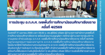 การประชุม อ.ก.ค.ศ. เขตพื้นที่การศึกษามัธยมศึกษาเชียงราย ครั้งที่ 4/2569 17 เมษายน 202617 เมษายน 2026 ข่าวประชาสัมพันธ์ สพม.เชียงราย จำนวนผู้ชม: 1 PR SESAOCR17 เมษายน 2026