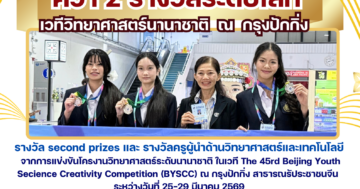 สำนักงานเขตพื้นที่การศึกษามัธยมศึกษาเชียงราย ขอแสดงความยินดีกับนักเรียนและครูโรงเรียนดำรงราษฎร์สงเคราะห์ ซึ่งเป็น ตัวแทนประเทศไทย คว้า 2 รางวัลระดับโลก เวทีวิทยาศาสตร์นานาชาติ ณ กรุงปักกิ่ง 30 มีนาคม 202630 มีนาคม 2026 ข่าวประชาสัมพันธ์ สพม.เชียงราย จำนวนผู้ชม: 12 PR SESAOCR30 มีนาคม 2026
